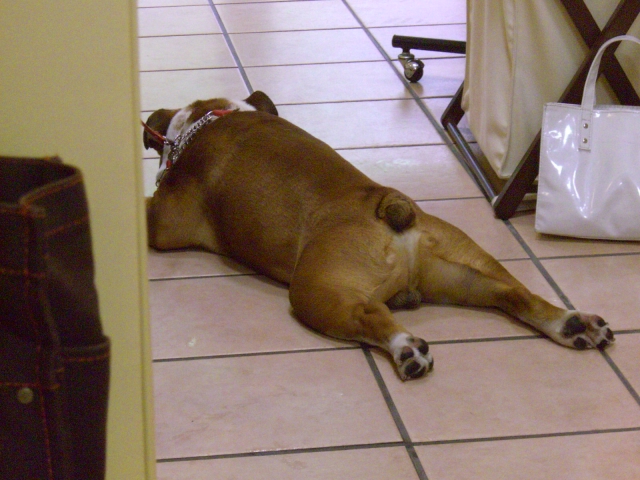 ブリュドグしゃんは暑いよれ、床にごろ~んして