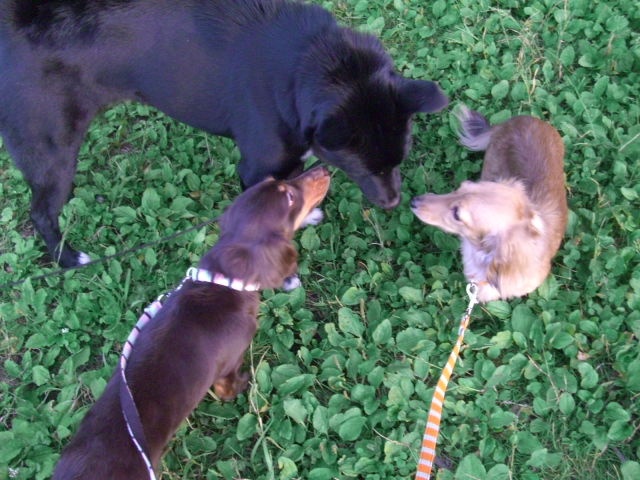 先頭をありゅくのはいつもあたちでつが、ワンコ&人に挨拶すりゅ時はラッしゃんが先でつ。
