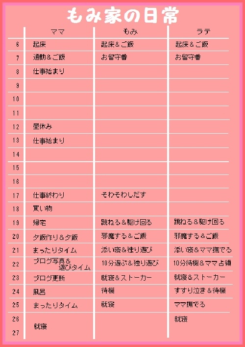 こえはもみ家の1日の日常を図にしたもにょでつ♪