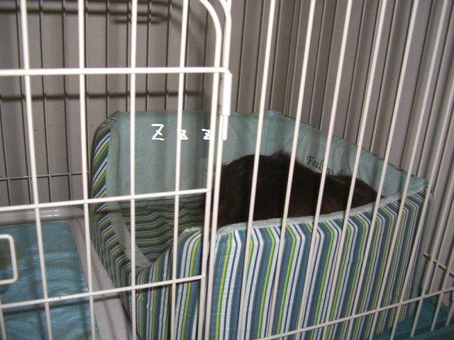 ラッしゃんは自ら下に降りて、クションかケージで寝てることが多いんでつププッ ( ̄m ̄*)