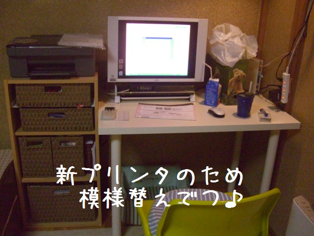 以前は右の壁に向かって机を置いていたんでつけど、プリンタを机の上に