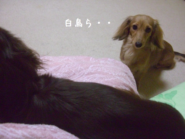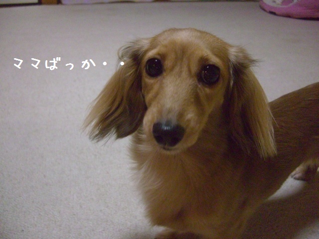 ちゃんとママのおひざに乗ればえのに・・・・。こえはまりゅで・・・・・