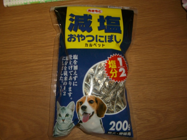 おすわけしてもらて、食べれることが解った『にぼし』君でつ。