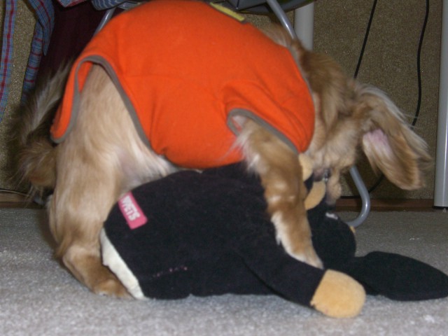 「こぇは!ぁたちのパペットではないでつか」 と臭いを嗅いで確認中。