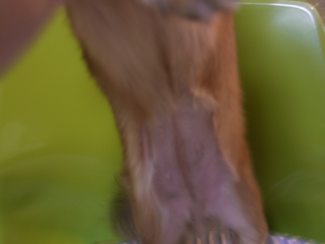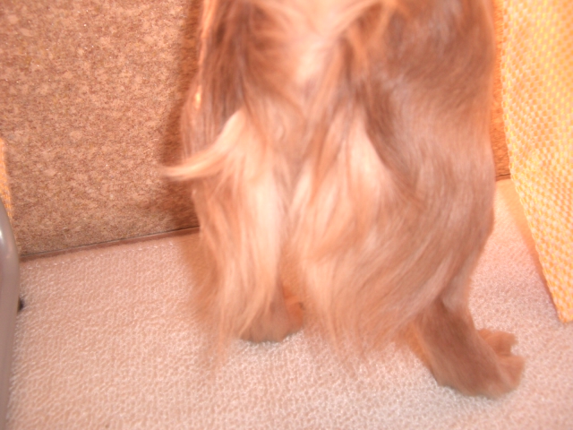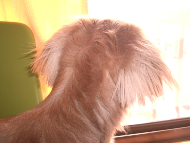 後から見た耳、お腹、お尻でつ・・・ノビノビしていて毛がボ~ボ~でごだいまつ。