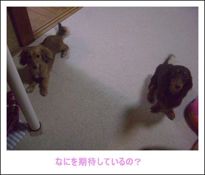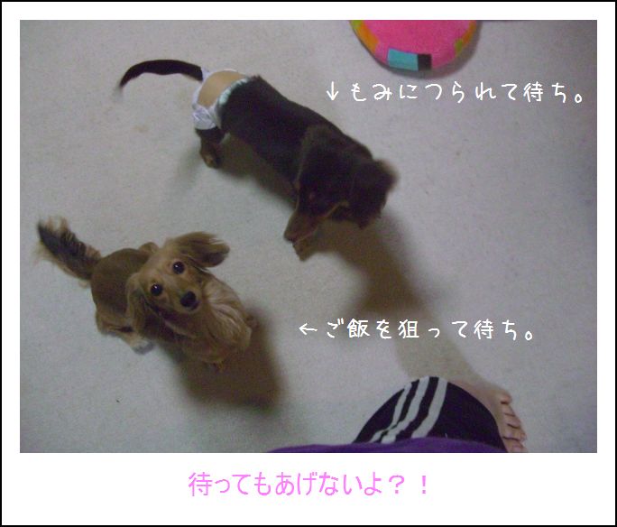 しっぽブンブンで見続けるあたち達・・・・早く夕飯にしてくれ!!!