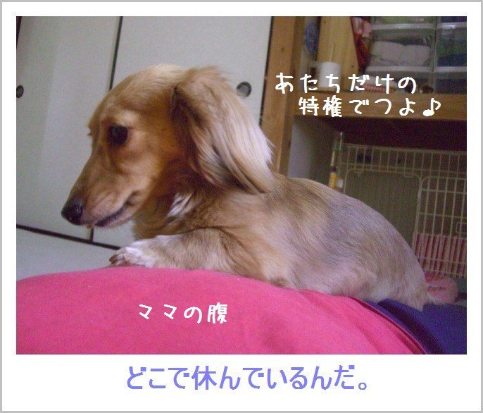 立派なママのお腹の上で休憩でつ♪