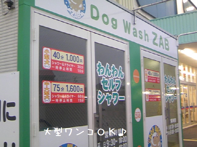 大型犬も入れて、水が跳ねないように胸のところまで浴槽がありまつ!