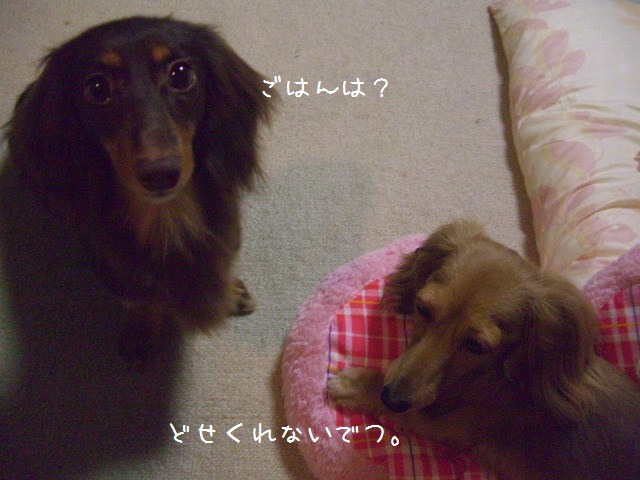 ここ1週間殆ど飲まず食わずの2ワン・・・結構解ってきていりゅよで、夕飯時(ママが)