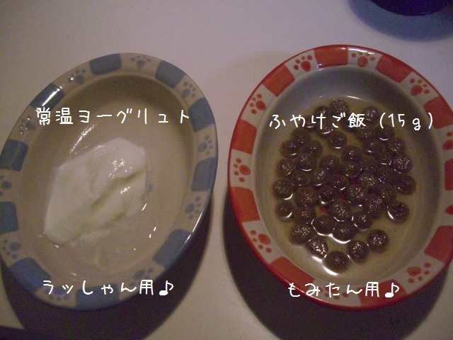 ラッしゃんはご飯なしのため、ビフィズスキン配合のヨーグリュト♪ だけ・・(*≧m≦*)ププッ