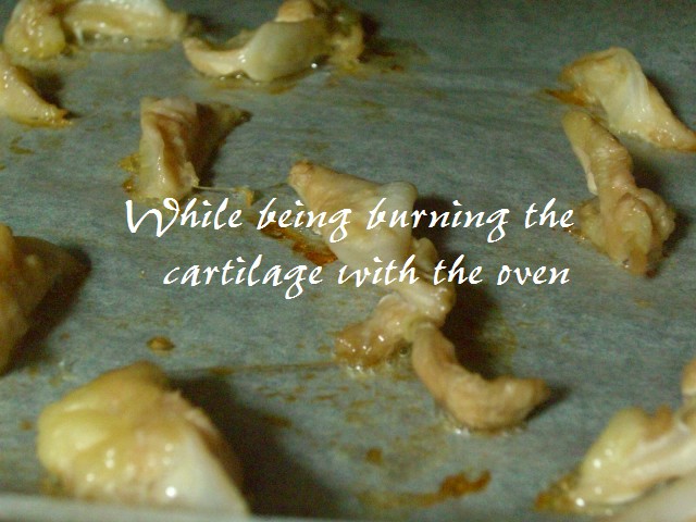 和訳 ) オーブンで軟骨を焼いている途中