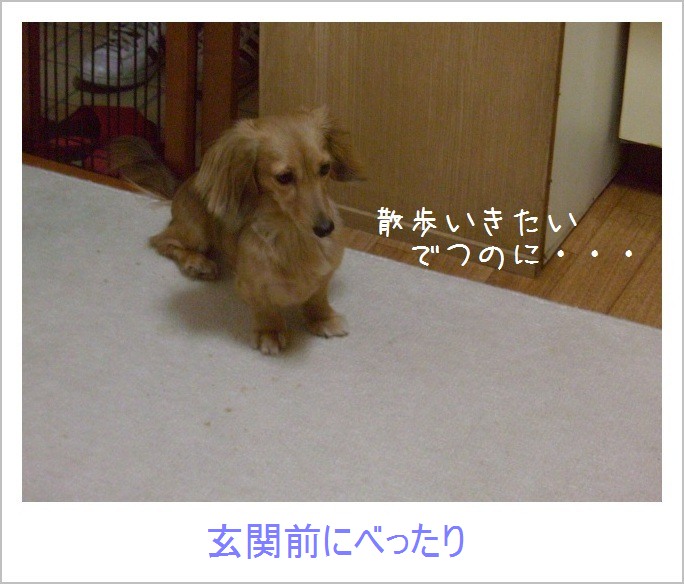 散歩の準備をすりゅママを待てずに、あたちは玄関に座りこみまつ。