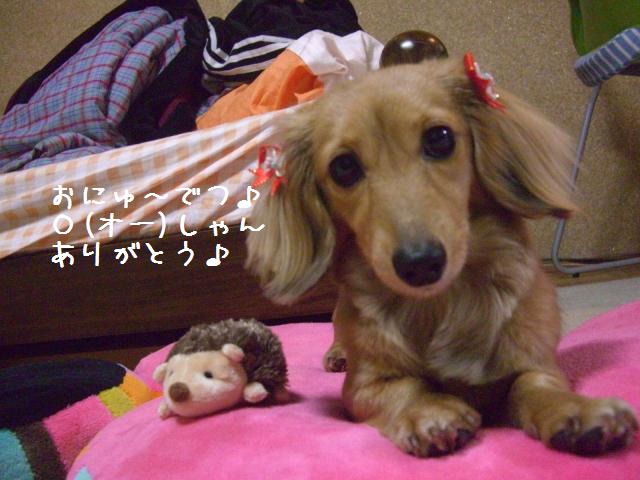 ママと元同じ部署だたO(オー)しゃんからハリネズミたん貰ったよでつ。