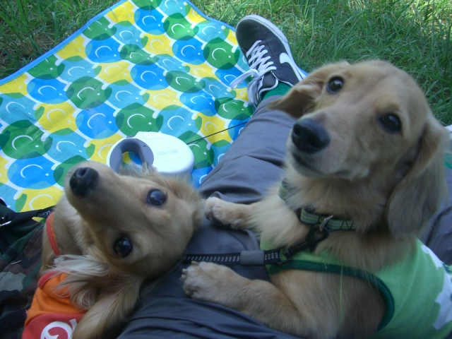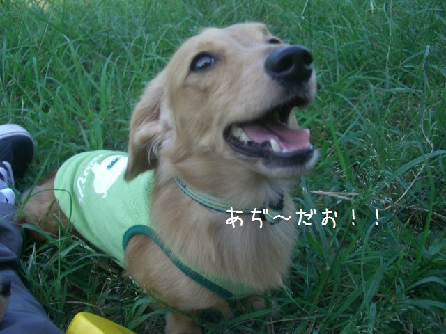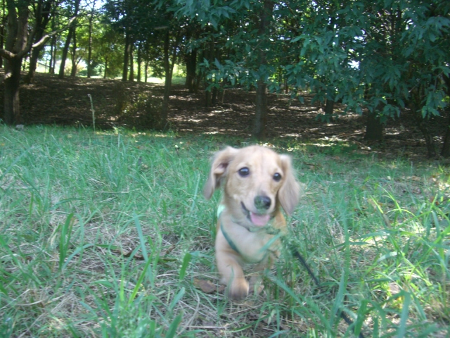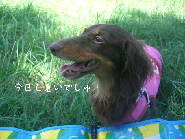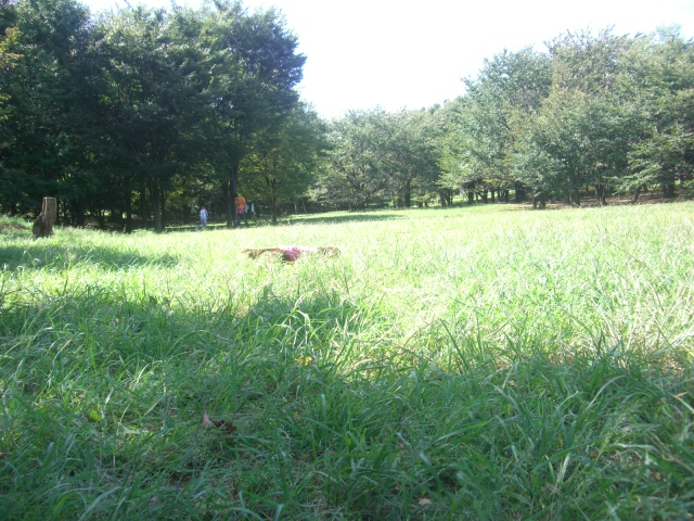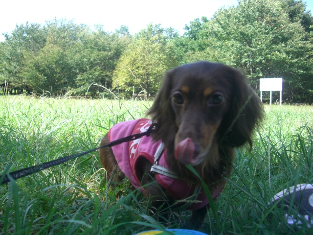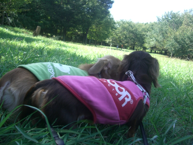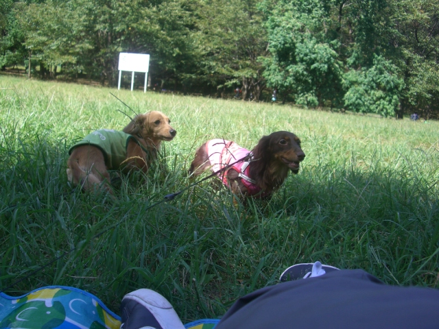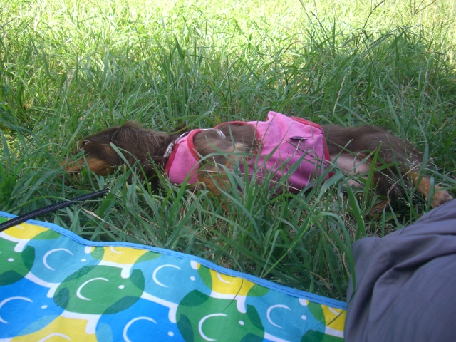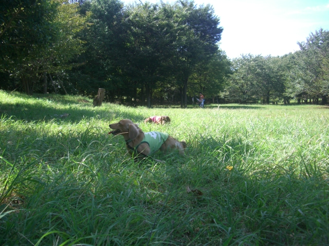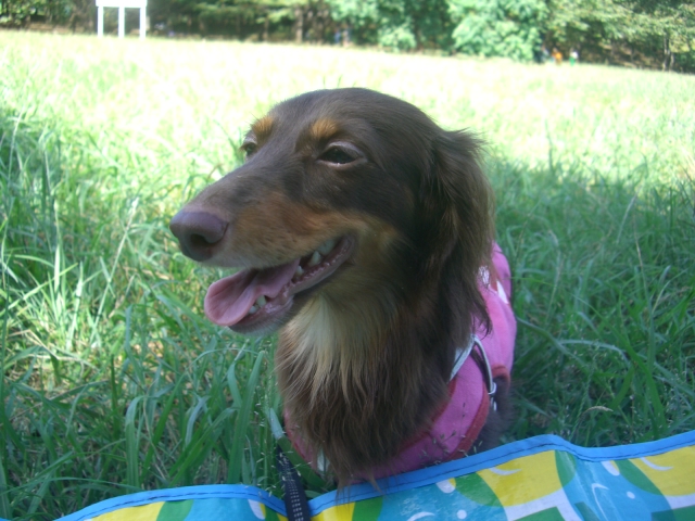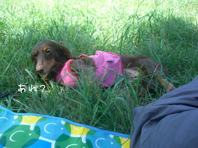 シートのカサカサなりゅのが嫌なのか、休むときは必ず草の上でつ!!