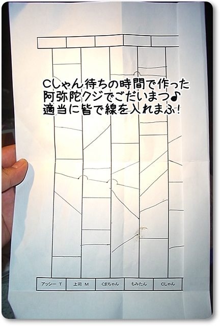 集合後いつもの場所で買出しをしてカラオケへ、1時間半位 歌った後抽選へ!