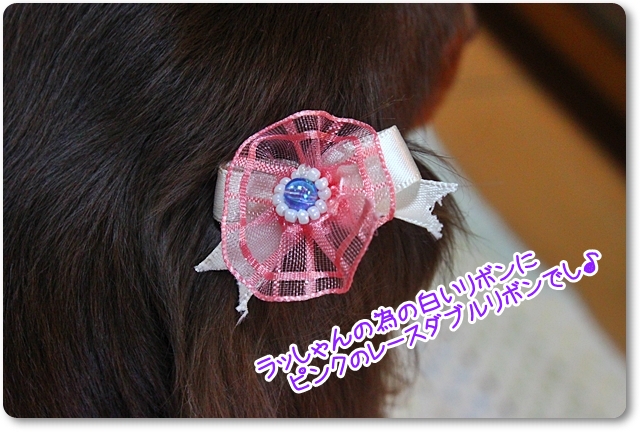 今回のリボンは元ママがラッしゃんの為に購入した白リボン♪