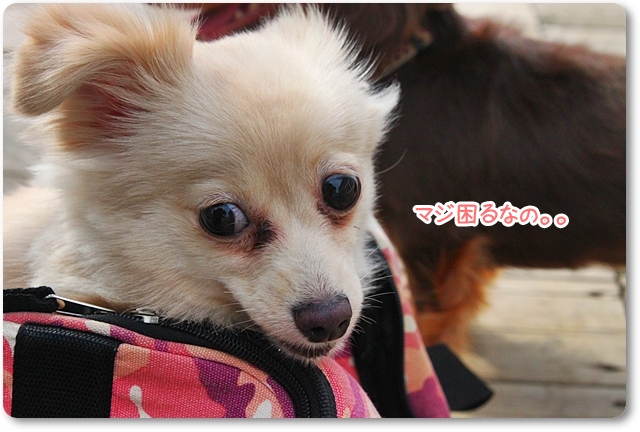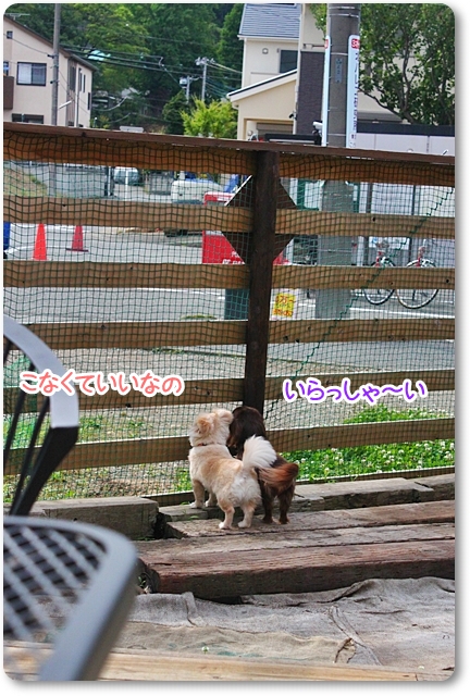 トイプーちゃんがいゆから、店内に戻るママに着いてこれなくて