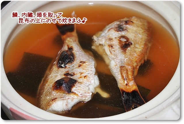 真鯛をほぐした後、土鍋に戻して混ぜまつ♪