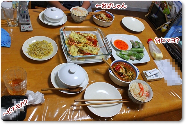 ズワイ蟹、伊勢海老をたらふく食べたママ、おばしゃんでつが