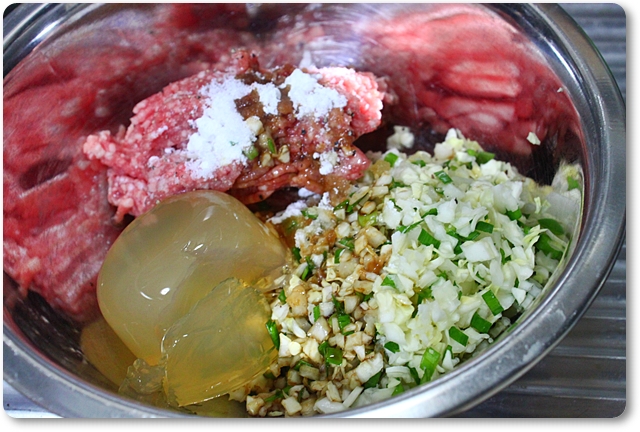 片栗粉、醤油、塩、胡椒、砂糖、醤油、胡麻油を入れて