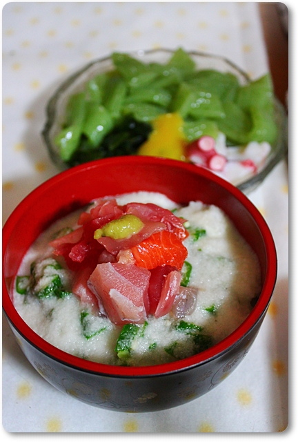 タコ、わかめ、さしみこんにゃくでサラダもどき(笑)
