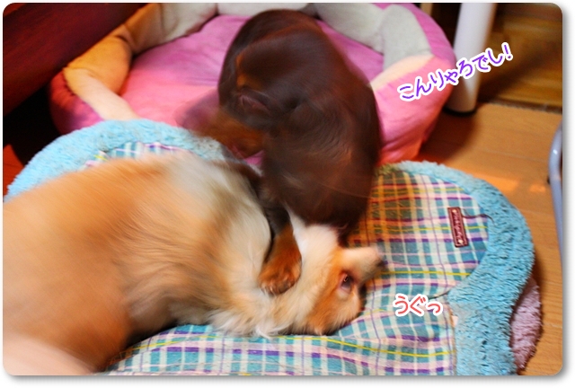 寝技に入られたら、前足をカプるとラッしゃんは止めるんだよ(笑)