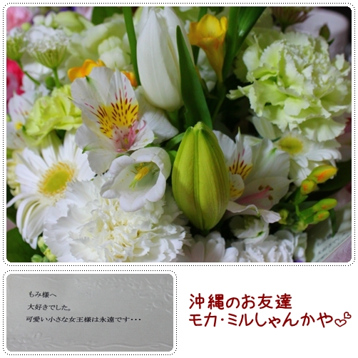 お友達のモカ・ミルさんからもーちゃんにお花が届きました!