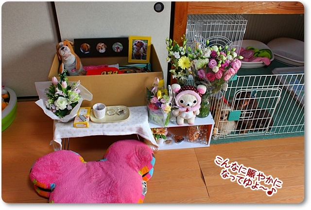 お花も沢山頂いたから、急遽棚を置いて飾れるようにしたのよ。