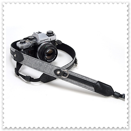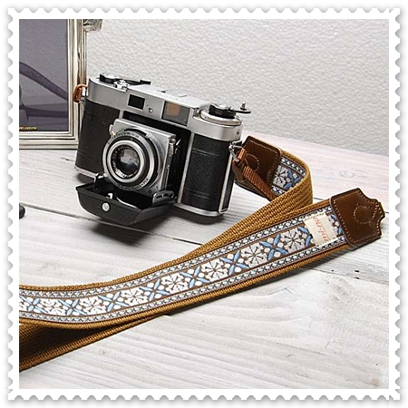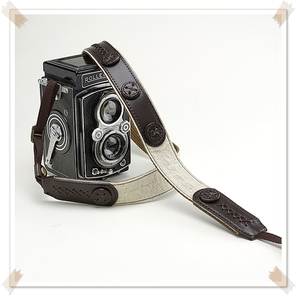右)203 Camera StrapsのリネンボタンDブラウン