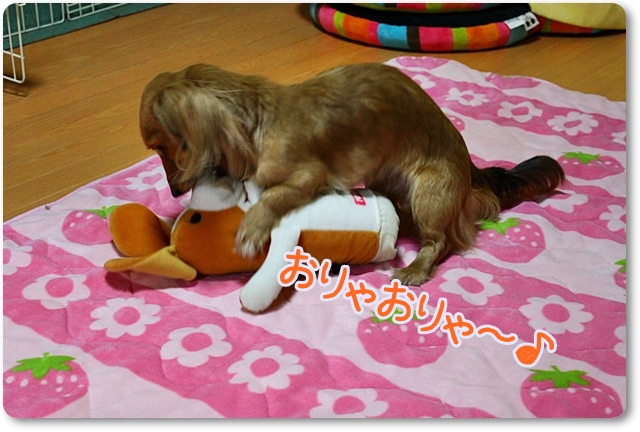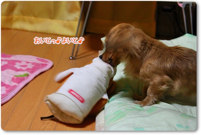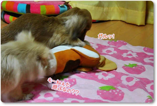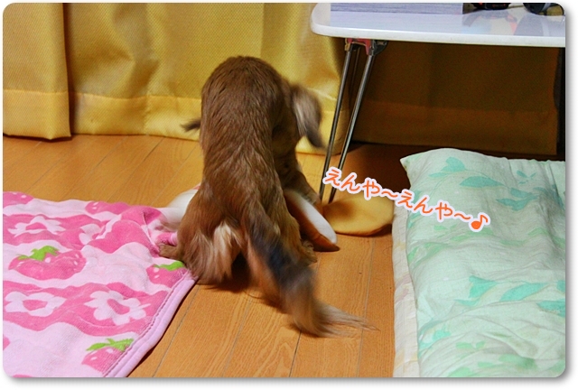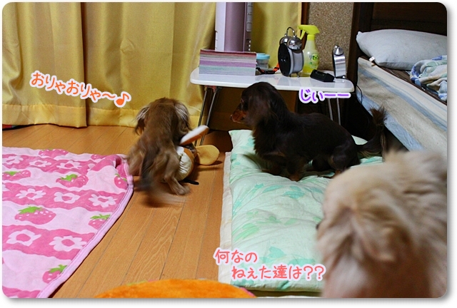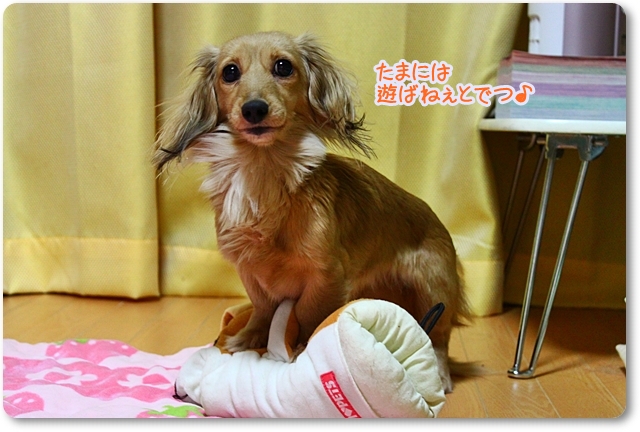 もみ様は見えていないのに、「こえは黒ダックスじゃねぇでつ!」と拒否。