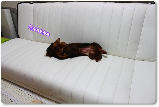ソファの横を広々使いど真ん中でへそ天(笑)
