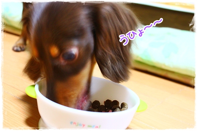 フードのみで与えると良く詰まって【きゅんきゅん】と泣き出すのでふ(汗)