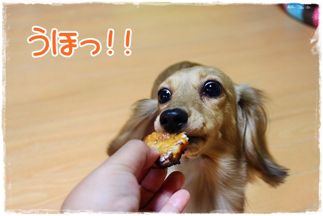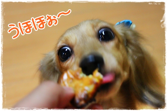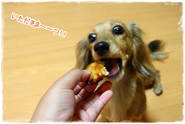 少しだけちぎってあげゆかや! (本当は温めたほが美味いらちい。。。)