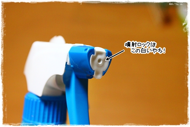 こえは白い部分をカチッとなるまであげると噴射できて、下ろすとレバーも固定