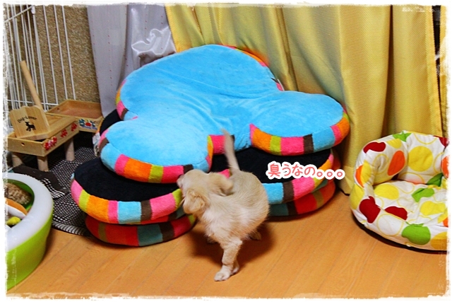 この骨型のクッションもスプレーしたいから退いてくえゆ??