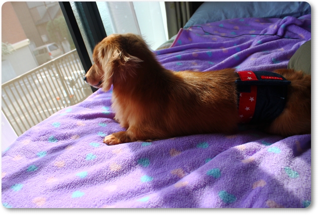 ベットに寝転んでお外をずっと見てまふた。