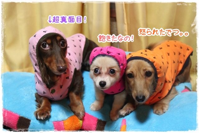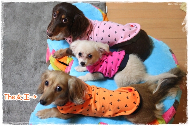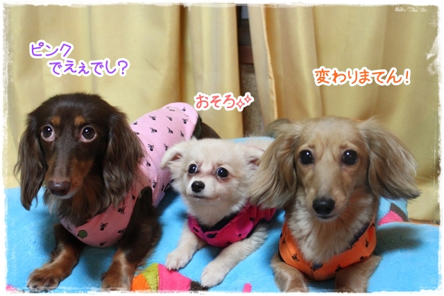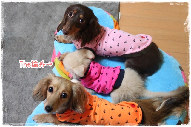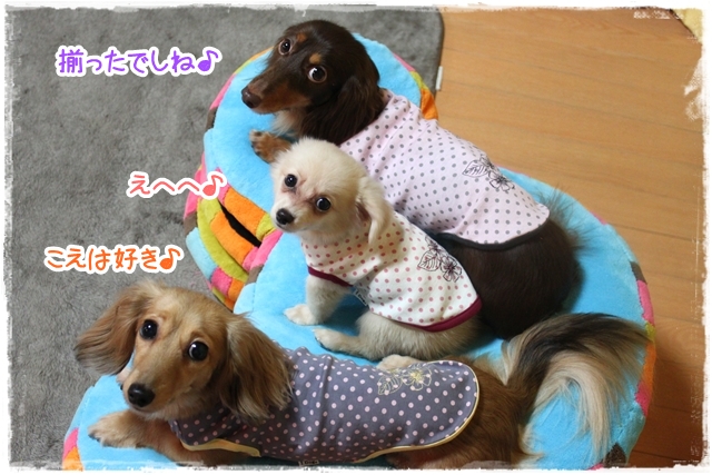 I Dogしゃんでセールやっていたのれ、3姉妹の初オソロをしてみまつた♪