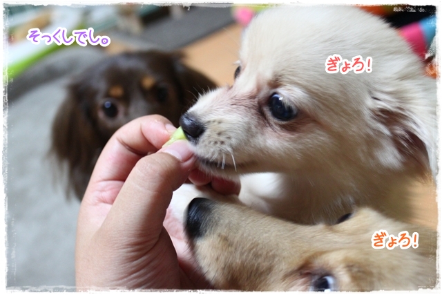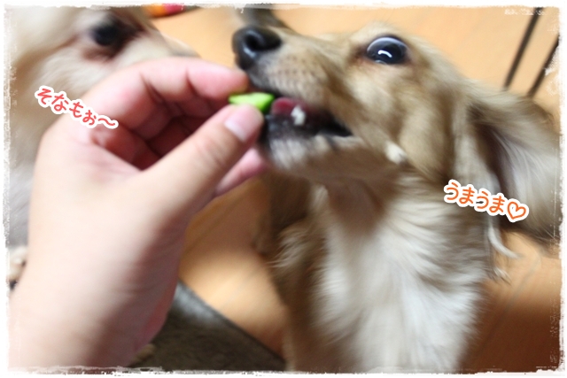 そしてもみラテの側をウロウロすゆギャングにもきゅうりだけ少しお裾分け。