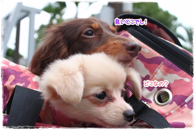 そなっちはまだ地面を歩けないのれ、カバンの中かやこににちわ♪