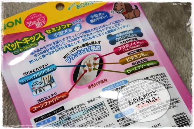 ミルクが入っていて、牛皮はもちよんお口の消臭効果であゆフラボノイドが