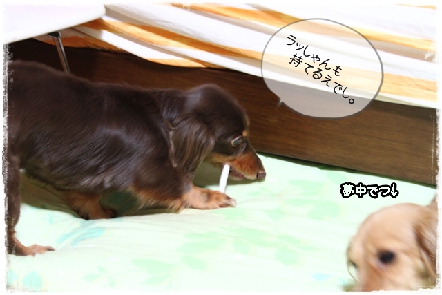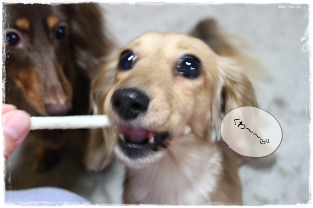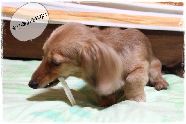 やっぱりダックスサイズの小型犬には柔らかすぎて、簡単に噛んで飲んじゃうね!
