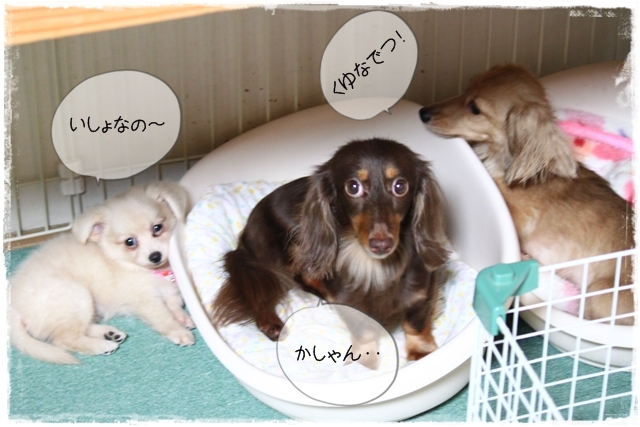 お昼寝を終えて少し経ったわんこ達に協力していただきまふ!(おかちで)