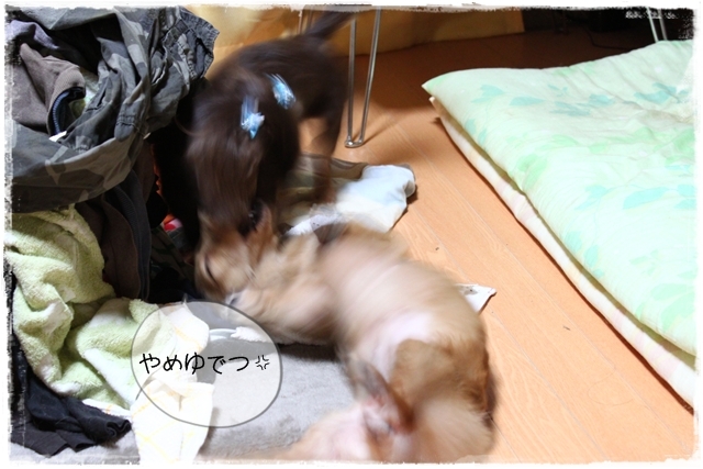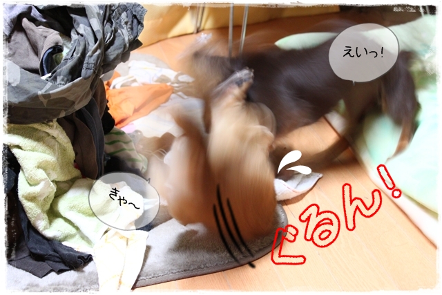 真剣なお顔して・・・洗濯物たためないんでつが。