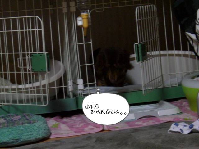 勝手にケージに逃げていゆのに・・・ママのせいかよ。