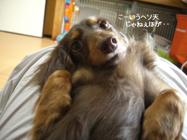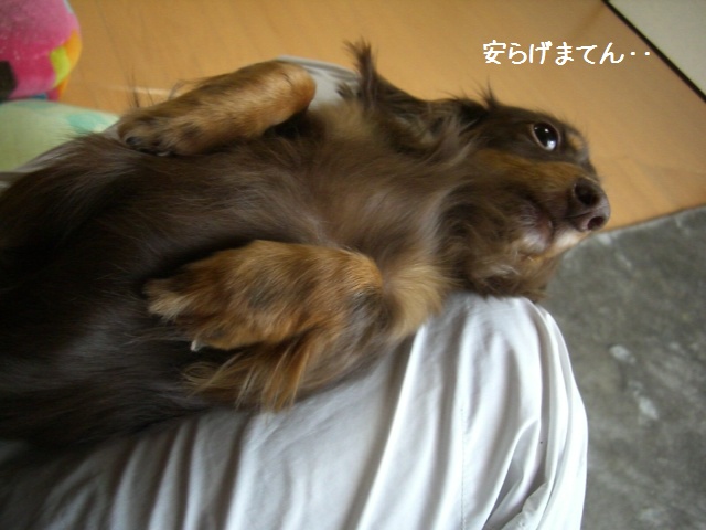 ママの膝でのヘソ天はリラックシュできないみたいなラッしゃん。