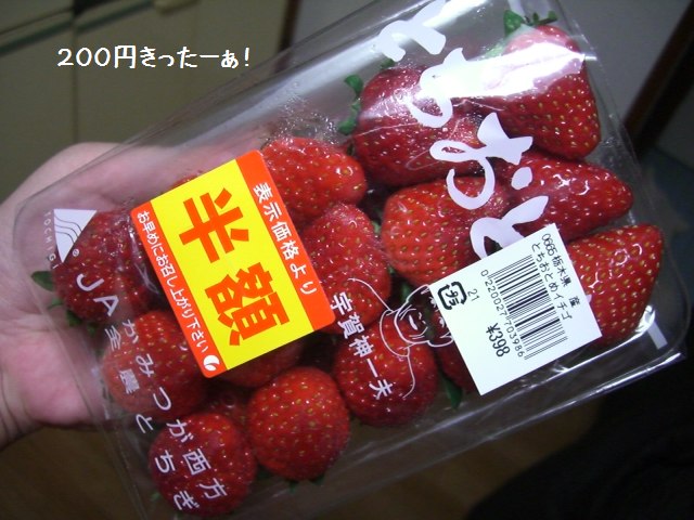 中でも傷んでもいない苺ちゃんが半額の199円!