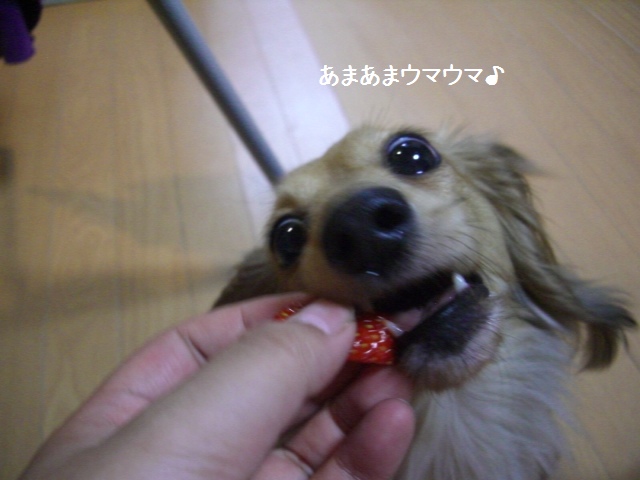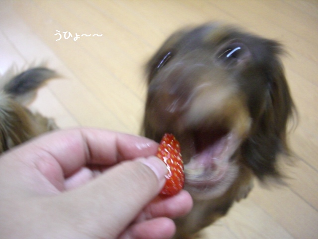 いちご1粒丸々でもあっという間に食べてしまいまつ。(飲みこむともいう)