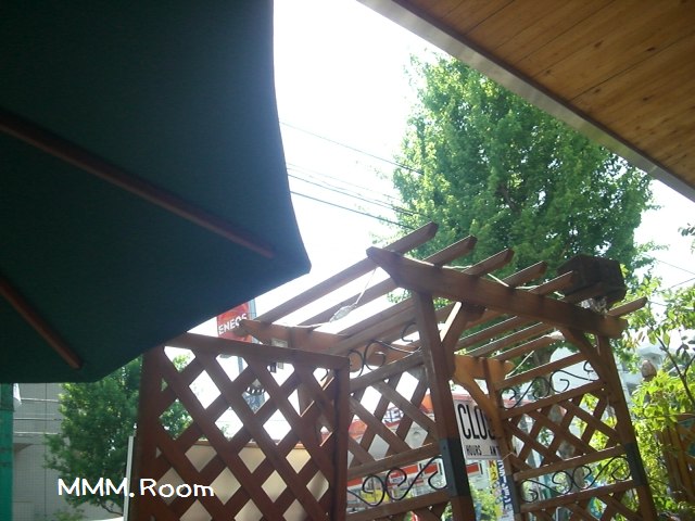 もみラテレオも一緒に入れるテラス席は心地よい風が通り、陽射しも心地よい。