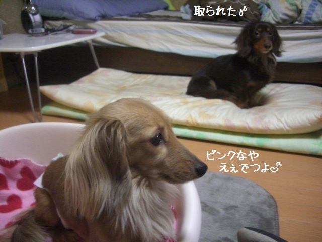 どーしてもピンクが良いもみ様は何度もラッしゃんのを取ろうとしまつの。