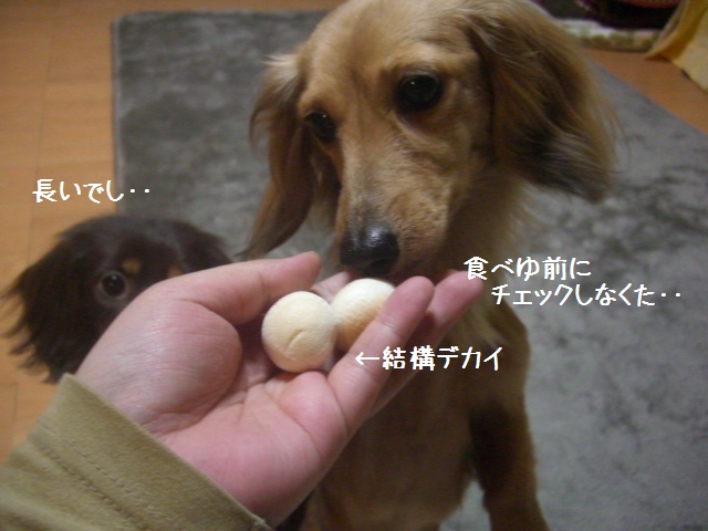 ・・・ラッしゃんは一口でいきまつが、もみ様にはムリみたいね。